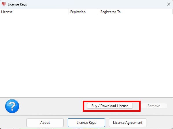 Step 2: On the License Keys window, click on the Buy / Download button. The Upgrade to BPTrakr Pro Edition window will appear.