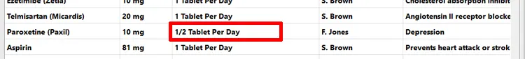 - The medication will display as “1/2 Tablet” when you enter 0.5 as number of tablets in Frequency field.