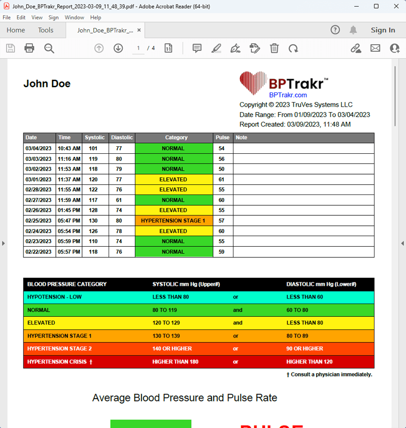 BPTrakr reports now includes the Blood Pressure Category Reference Chart