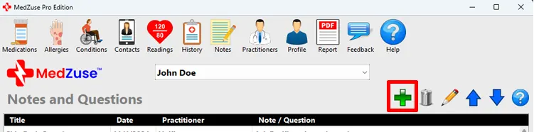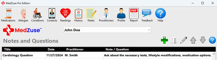 The Notes and Questions List is accessible only when you upgrade to the Pro Edition of Medzuse.