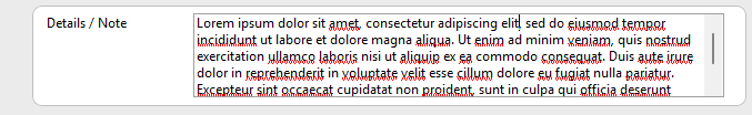 The Note field has been expanded for several categories to support multiple lines of text
