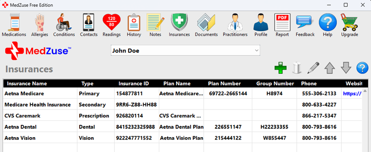 - The Insurance Screen now accommodates multiple insurances with various types of insurance such as Primary, Secondary, Prescription, Dental, and Vision.